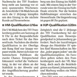 Qualifikation zum Hessenjugendpokal U18-weiblich Mitte 1 in Frankenberg Am Wochenende starteten die Mädchen des TSV Hessen 1848 Frankenberg in die …