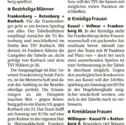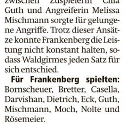 Bezirksoberliga Nord Frauen TSV Hessen 1848 Frankenberg 1 VC Blockfrei Hofgeismar : TSV Hessen 1848 Frankenberg 1 0 : 3 …