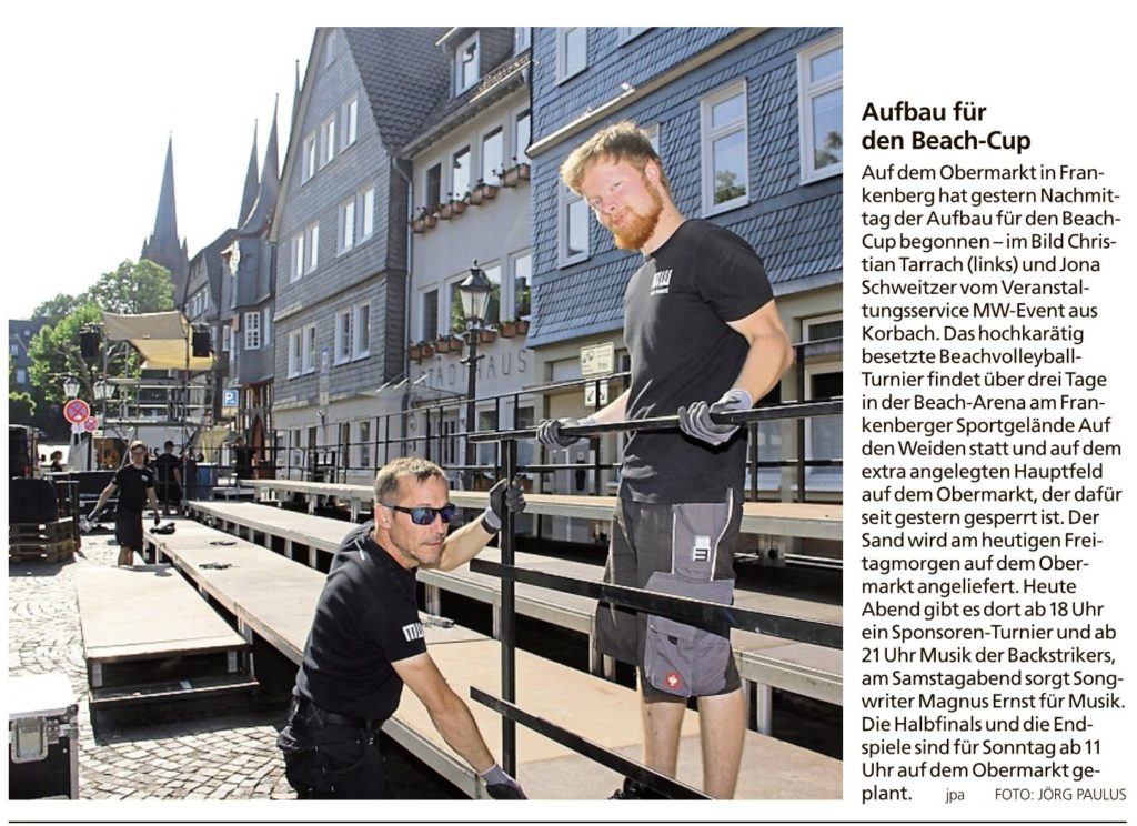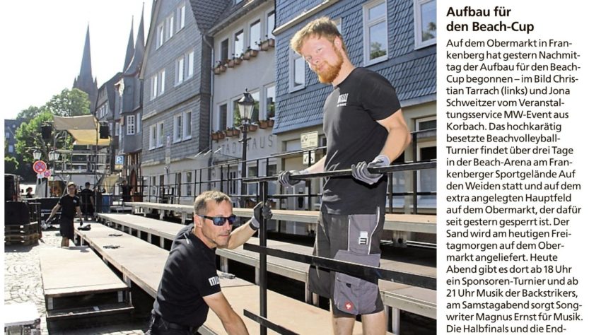 Aufbau für den Beach-Cup von Viktor MünchJuni 13, 2025Presse Bericht in der HNA Frankenberger Allgemeine