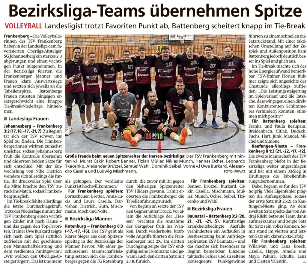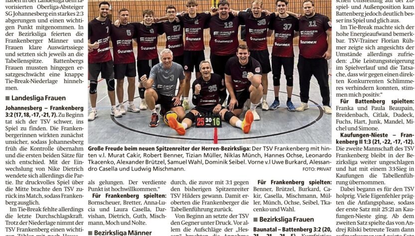 Bezirksliga-Teams übernehmen Spitze von Viktor MünchDezember 10, 2025Presse Bericht in der HNA Frankenberger Allgemeine