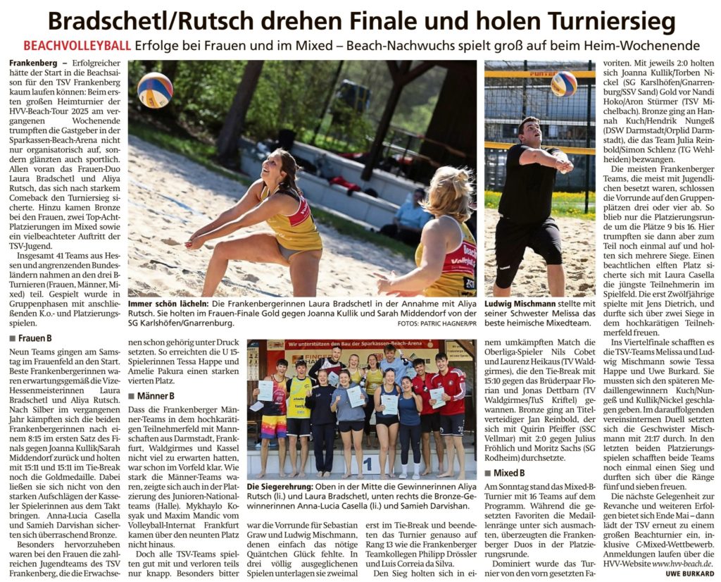Bradschetl/Rutsch drehen Finale und holen Turniersieg von Viktor MünchMai 5, 2025Mai 15, 2025Presse Bericht in der HNA Frankenberger Allgemeine