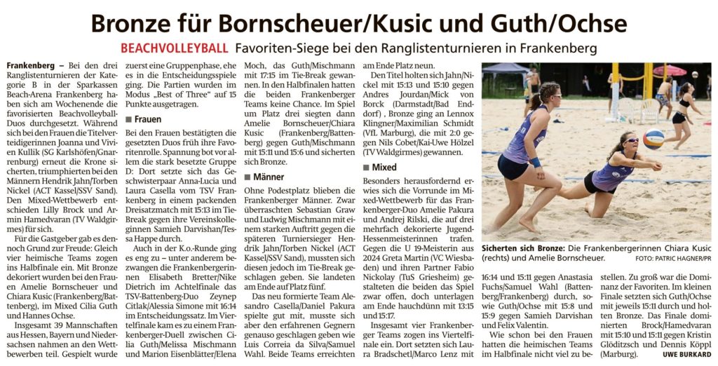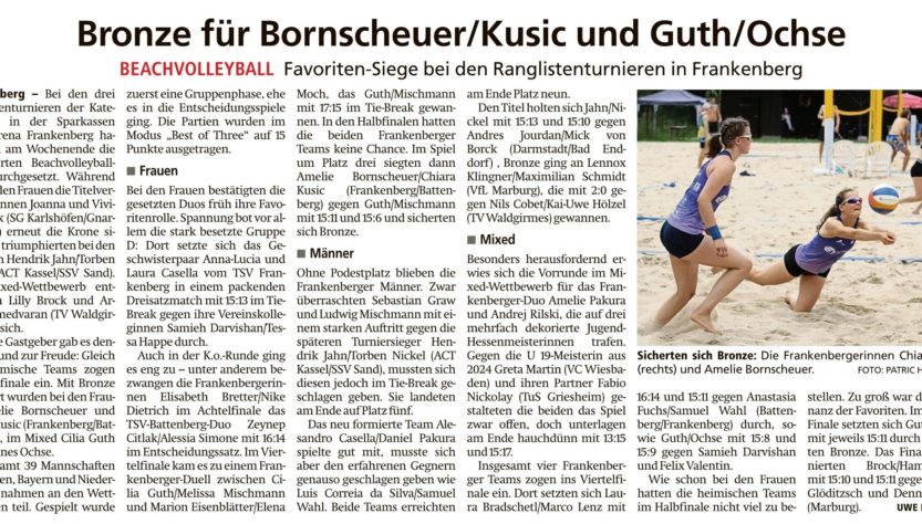 Bronze für Bornscheuer/Kusic und Guth/Ochse von Viktor MünchJuli 18, 2025Presse Bericht in der HNA Frankenberger Allgemeine