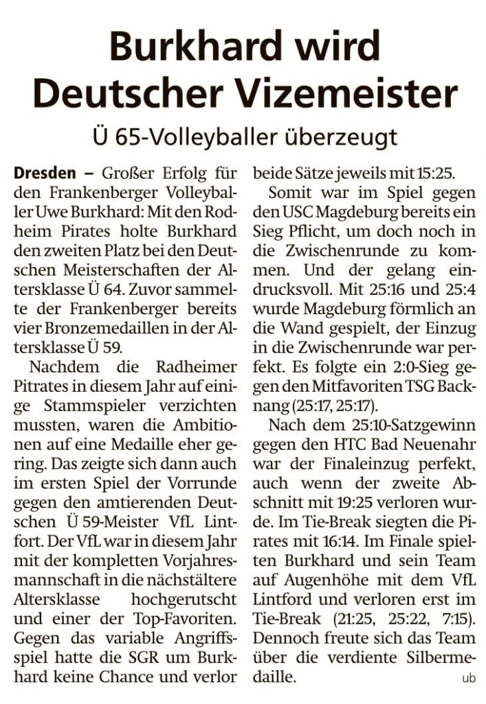 Burkhard wird Deutscher Vizemeister von Viktor MünchJuni 19, 2025Juni 20, 2025Presse Bericht in der HNA Frankenberger Allgemeine