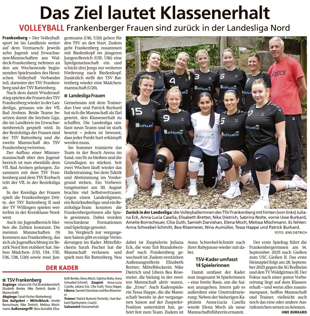 Das Ziel lautet Klassenerhalt von Viktor MünchSeptember 11, 2025Presse Bericht in der HNA Frankenberger Allgemeine