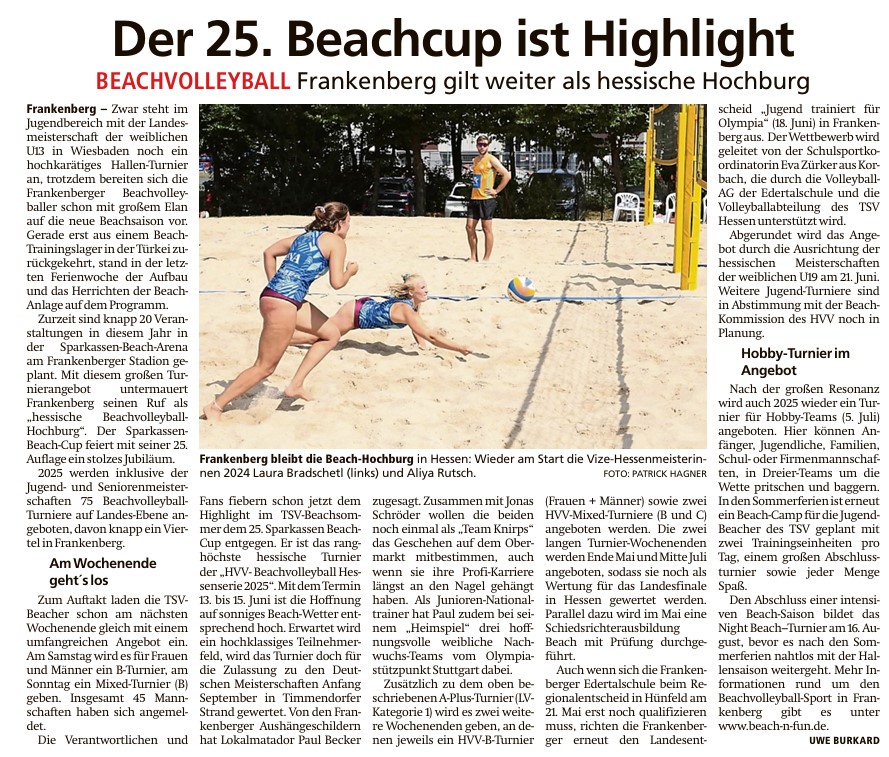 Der 25. Beachcup ist Highlight von Viktor MünchApril 28, 2025April 28, 2025Presse Bericht in der HNA Frankenberger Allgemeine