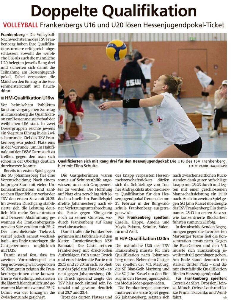 Doppelte Qualifikation von Viktor MünchFebruar 5, 2026Presse Bericht in der HNA Frankenberger Allgemeine