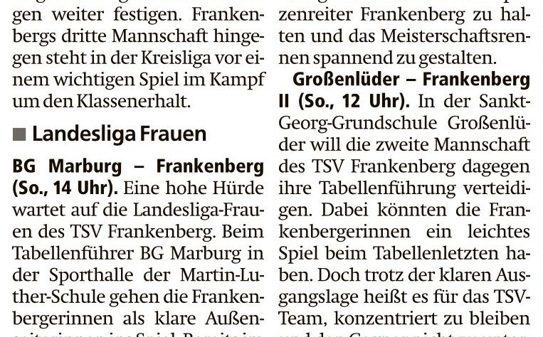 Frankenberg beim Spitzenreiter Außenseiter von Viktor MünchFebruar 9, 2026Presse Bericht in der HNA Frankenberger Allgemeine
