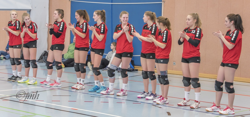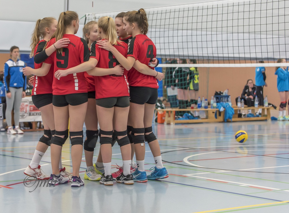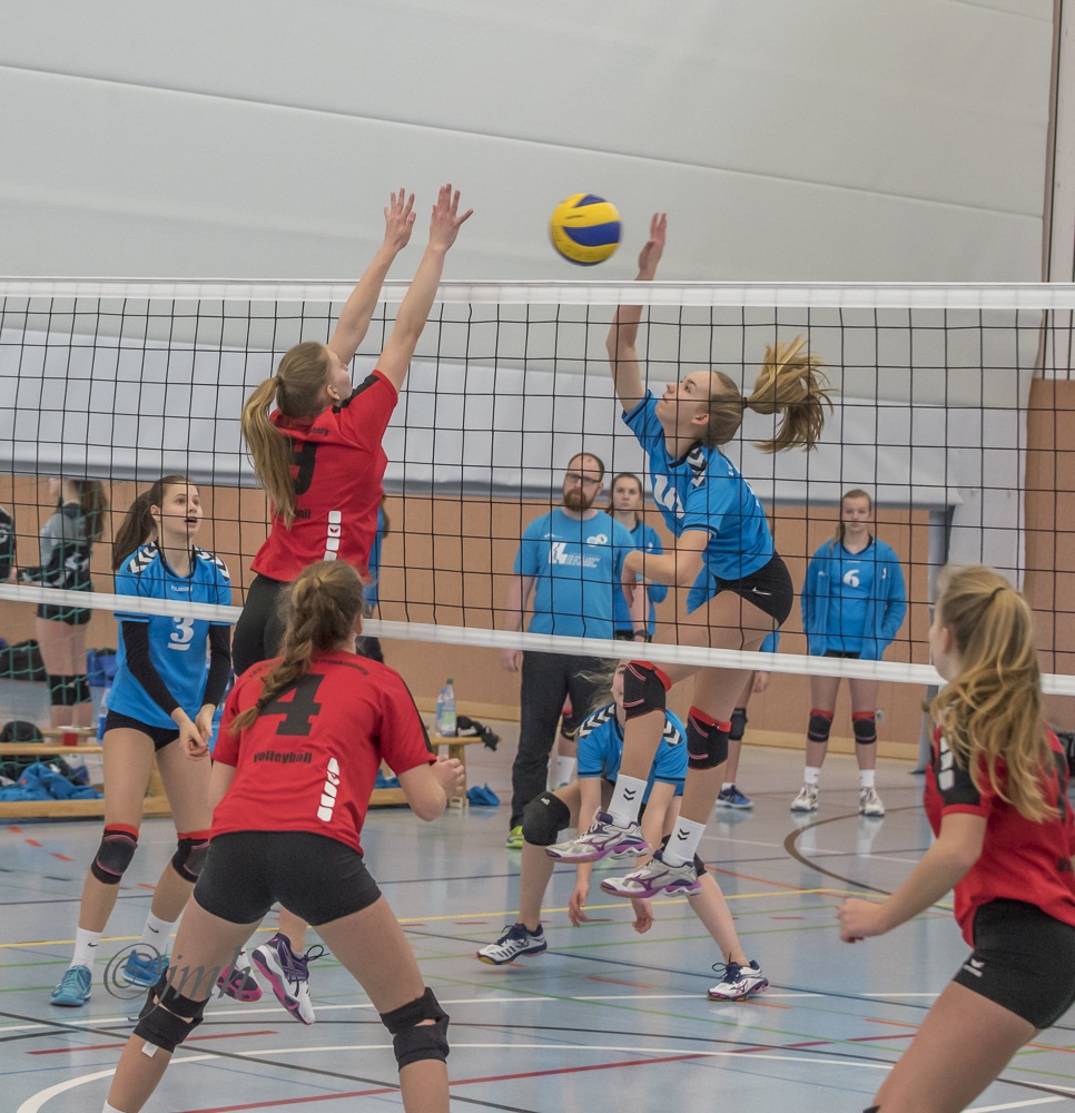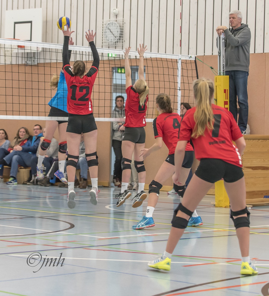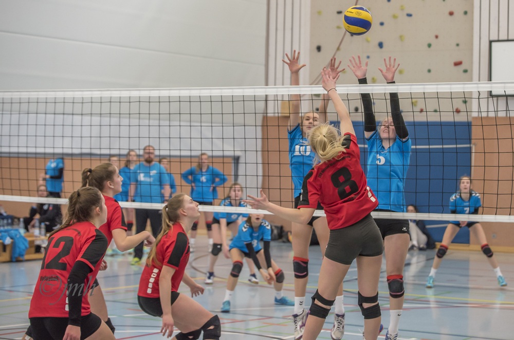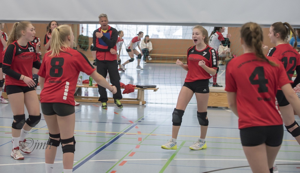 Im damit verbliebenen Spiel um Platz Fünf, holte sich der TSV dann aber den erhofften Sieg. Wie schon beim Qualifikationsturnier im Dezember war die Begegnung gegen den TSV Auerbach nichts für schwache Nerven. Obwohl vor allem in der Anfangsphase Alessa Hallmann und Annabelle Briel mit klugen Angriffen für ein leichtes Punktepolster sorgen konnten, verflachte das Spiel auf beiden Seiten zusehends. Zwar wurde um jeden Punkt erbittert gekämpft, aber das präzise und druckvolle Spiel aus der Vorrunde wurde nicht mehr erreicht. Nach Satzausgleich (jeweils 25:23) musste der Tie-Break die Entscheidung bringen. Mit der besseren Abwehrarbeit setzten sich am Ende verdient die Gastgeberinnen durch und holten sich Platz 5 bei den Landesmeisterschaften.