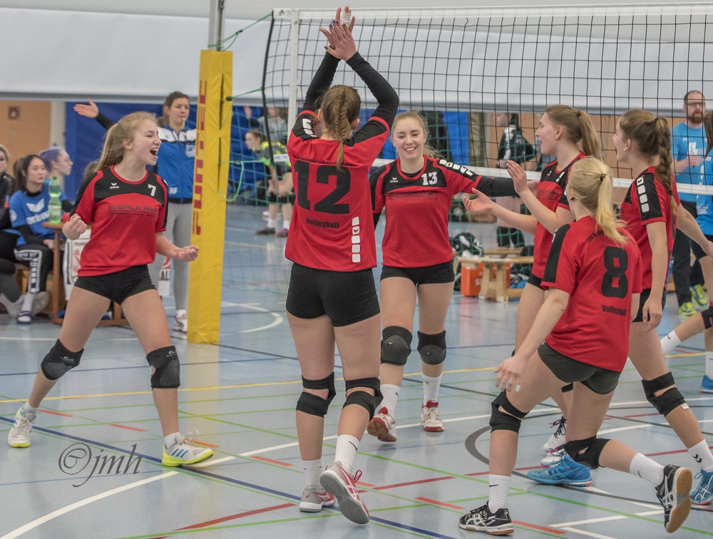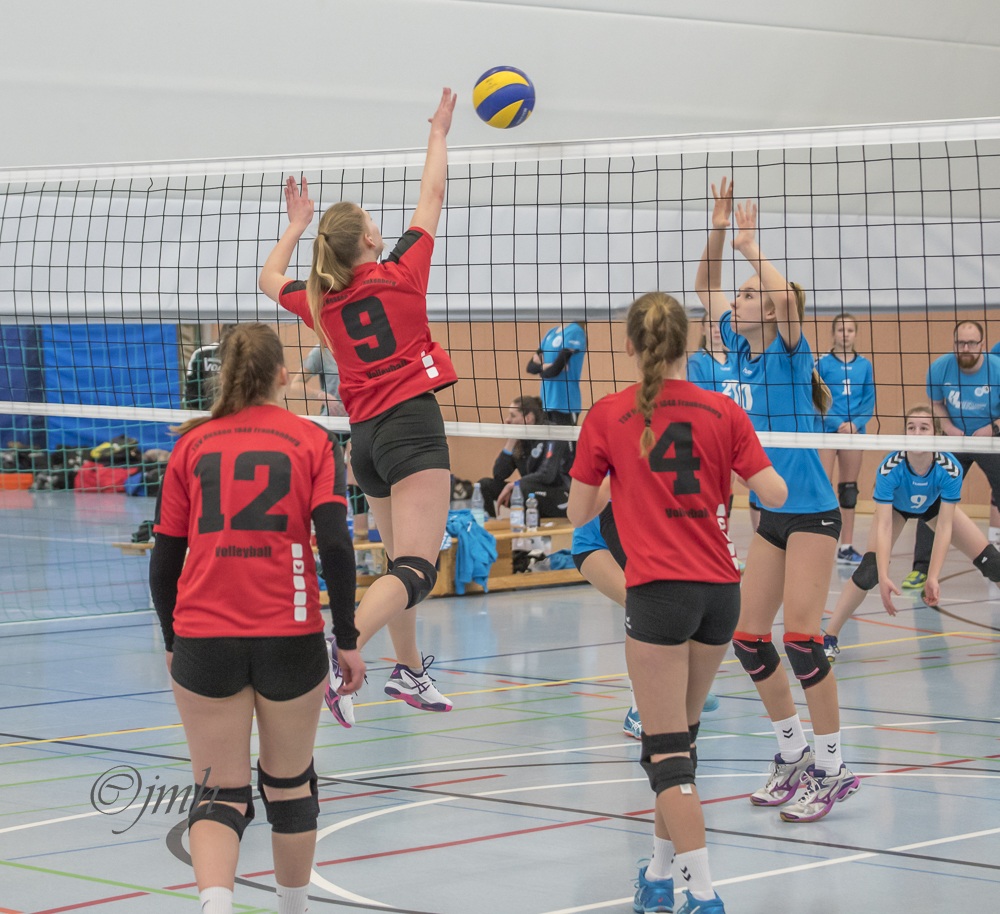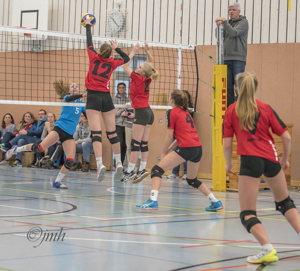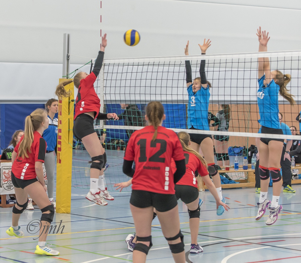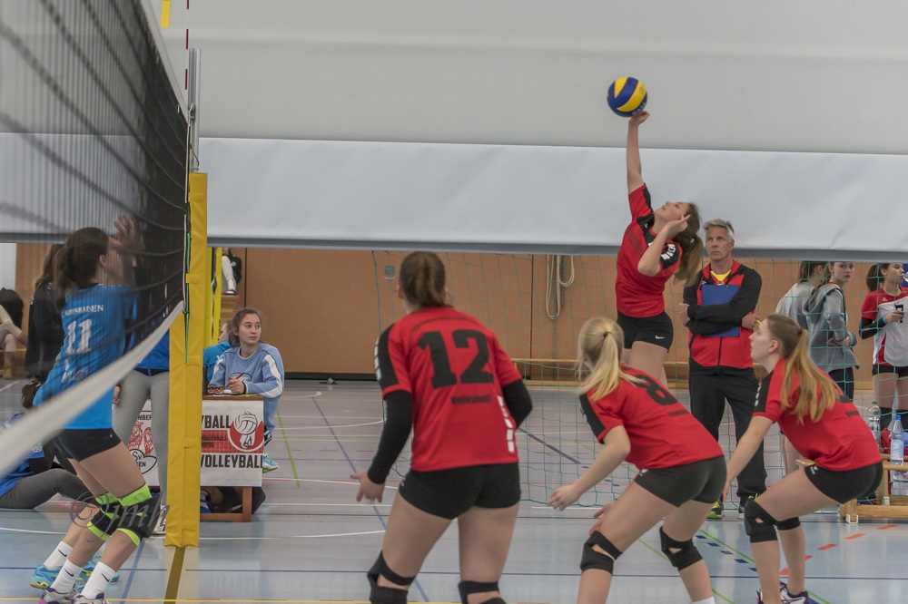 Im damit verbliebenen Spiel um Platz Fünf, holte sich der TSV dann aber den erhofften Sieg. Wie schon beim Qualifikationsturnier im Dezember war die Begegnung gegen den TSV Auerbach nichts für schwache Nerven. Obwohl vor allem in der Anfangsphase Alessa Hallmann und Annabelle Briel mit klugen Angriffen für ein leichtes Punktepolster sorgen konnten, verflachte das Spiel auf beiden Seiten zusehends. Zwar wurde um jeden Punkt erbittert gekämpft, aber das präzise und druckvolle Spiel aus der Vorrunde wurde nicht mehr erreicht. Nach Satzausgleich (jeweils 25:23) musste der Tie-Break die Entscheidung bringen. Mit der besseren Abwehrarbeit setzten sich am Ende verdient die Gastgeberinnen durch und holten sich Platz 5 bei den Landesmeisterschaften.