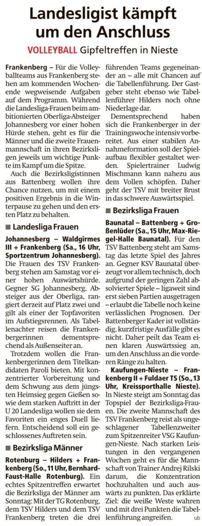 Landesligist kämpft um den Anschluss von Viktor MünchDezember 4, 2025Dezember 8, 2025Presse Bericht in der HNA Frankenberger Allgemeine