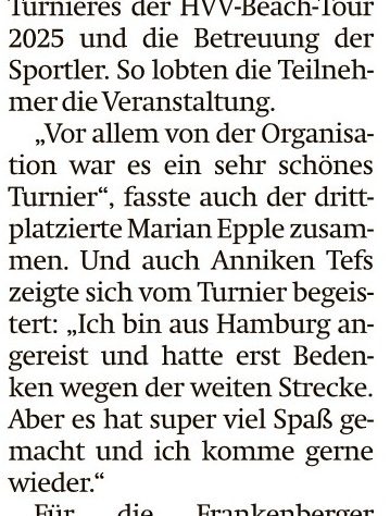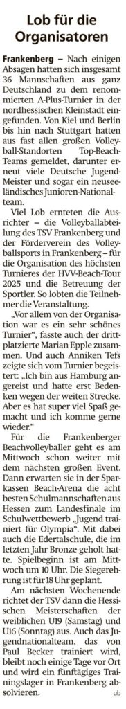 Lob für die Organisatoren von Viktor MünchJuni 17, 2025Juni 20, 2025Presse Bericht in der HNA Frankenberger Allgemeine