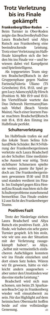 Trotz Verletzung bis ins Finale gekämpft von Viktor MünchJuni 11, 2025Juni 11, 2025Presse Bericht in der HNA Frankenberger Allgemeine
