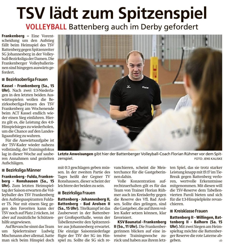 TSV lädt zum Spitzenspiel von Viktor MünchFebruar 20, 2025Presse Bericht in der HNA Frankenberger Allgemeine