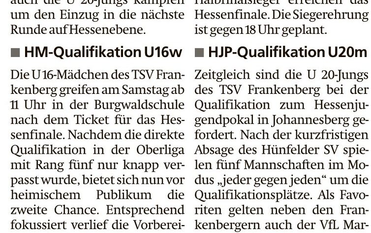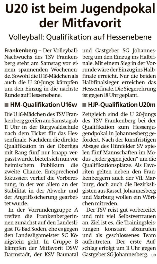 U20 ist beim Jugendpokal der Mitfavorit von Viktor MünchJanuar 30, 2026Februar 2, 2026Presse Bericht in der HNA Frankenberger Allgemeine