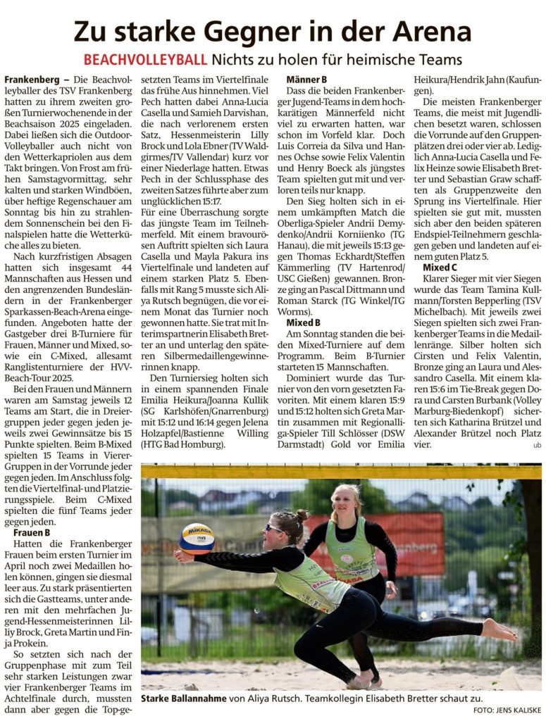 Zu starke Gegner in der Arena von Viktor MünchJuni 2, 2025Juni 6, 2025Presse Bericht in der HNA Frankenberger Allgemeine